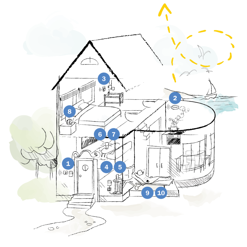 huis. Wanneer een zender een activiteit detecteert, signaleert hij de
